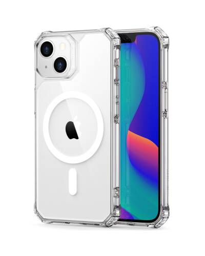 ESR Air Armor HaloLock jednoczęściowe etui, składający się ze sztywnych, przezroczystych plecków oraz elastycznej ramki wokół, wykonanej z termoplastycznego, miękkiego materiału, która dodatkowo chroni urządzenie przed uszkodzeniem.
