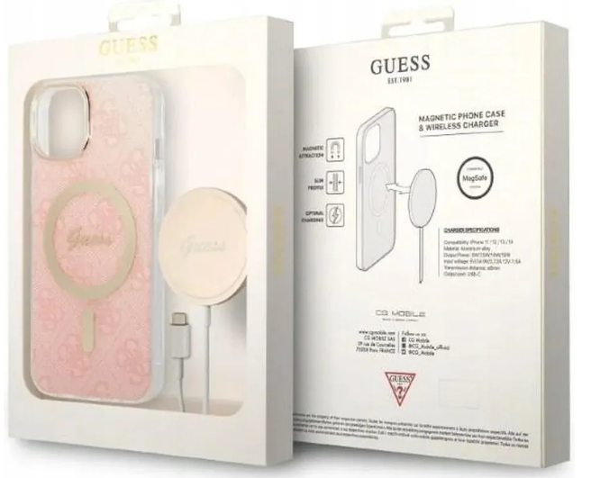 Zadbaj o swój iPhone 14 w najlepszym stylu! Wybierz etui Guess 4G Gold Pink MagSafe + Ładowarkę i ciesz się luksusem każdego dnia.