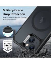 ESR Air Armor HaloLock jednoczęściowe etui, składający się ze sztywnych plecków oraz elastycznej ramki wokół, wykonanej z termoplastycznego, miękkiego materiału, która dodatkowo chroni Twojego Apple iPhone 15 przed uszkodzeniem.