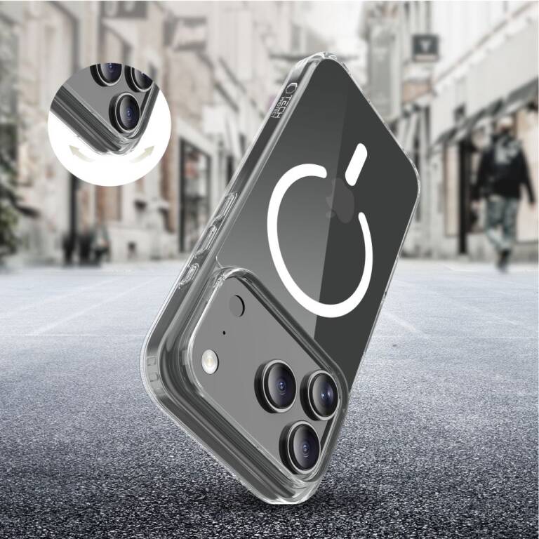 Klasyczny, jednoczęściowy case Flexair Hybrid Magsafe od Tech-Protect o przezroczystym wykończeniu, stworzony z myślą o podkreśleniu linii i oryginalnej sylwetki urządzenia.