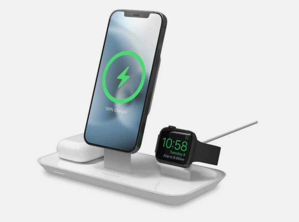Stacja ładująca Mophie 3-w-1 to nowoczesne rozwiązanie umożliwiające jednoczesne ładowanie trzech urządzeń Apple w jednym miejscu. Urządzenie zostało zaprojektowane z myślą o wygodzie codziennego użytkowania i estetyce przestrzeni roboczej lub sypialni. Dzięki zintegrowanej technologii bezprzewodowej pozwala na szybkie i stabilne ładowanie iPhone’a, Apple Watcha oraz słuchawek AirPods bez konieczności korzystania z wielu kabli i ładowarek.