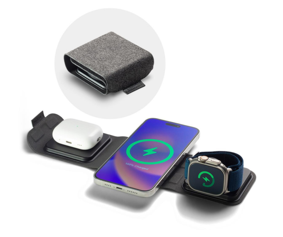 Czy masz czasem wrażenie, że potrzebujesz osobnej walizki na ładowarki i kable? Ładowarka Mophie Travel ma wszystko, czego potrzebujesz, by wygodnie ładować swoje urządzenia w podróży. Telefon, Apple Watch i słuchawki AirPods lub Airpods Pro zasilane są bezprzewodowo z mocą 5 W – 15 W.