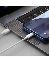 Elastyczny, wytrzymały kabel Baseus Wisdom posiadający złącza w standardzie USB-C oraz Lightning umożliwia przesyłanie danych oraz ładowanie baterii w urządzeniach Apple.