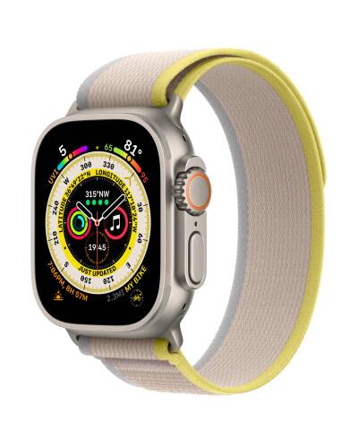 Opracowaną specjalnie dla Apple Watch Ultra tarczę Przewodnik wypełnia zegar, który można przełączyć na kompas z bieżącym wskazaniem. Umieścisz na niej aż osiem komplikacji. A kiedy w słabym świetle przekręcisz Digital Crown, aktywując Tryb nocny, tarcza rozżarzy się intensywną czerwienią.